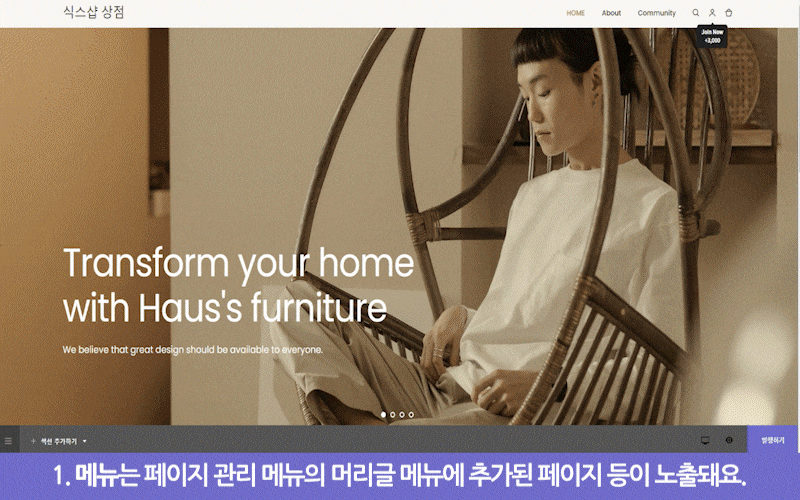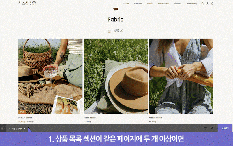 설정 중인 페이지에 이미 추가된 상품 목록 섹션이 있다면, 4번부터 설정해 주시면 됩니다.🙋