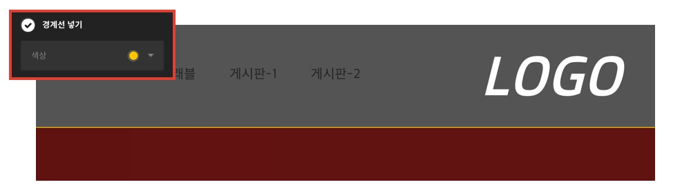 머리글과 바닥글의 스타일 편집 설정에서 원하는 색상으로 경계선을 넣을 수 있습니다.