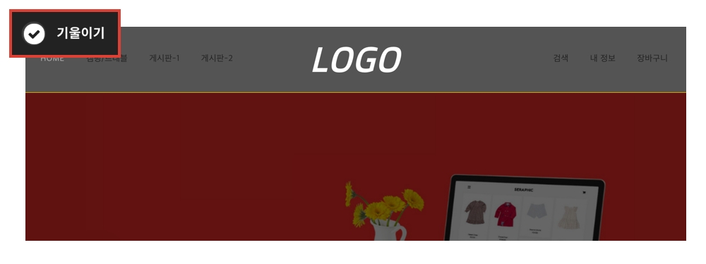 머리글의 로고 스타일 편집에서 기울이기를 설정할 수 있습니다.