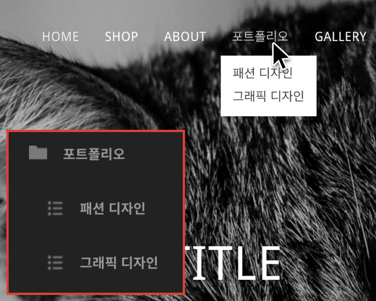 페이지가 없는 폴더 메뉴로 하위 카테고리 메뉴를 만들 수 있습니다.
