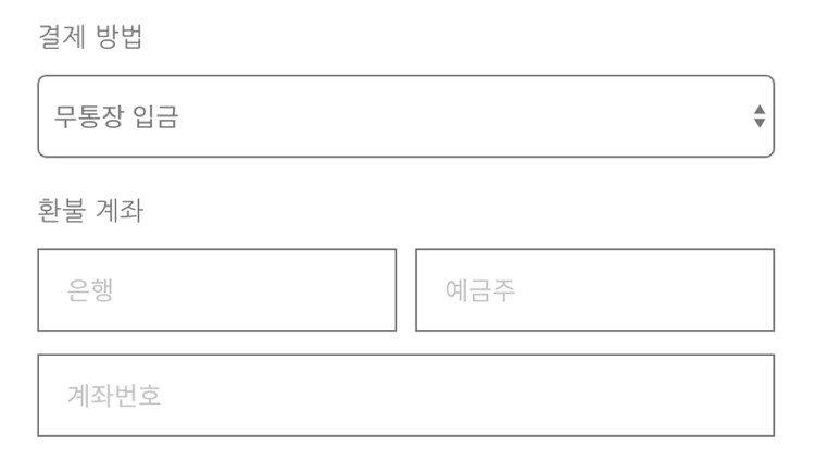 주문자가 무통장 입금, 가상 계좌 결제 시 환불 계좌를 입력할 수 있습니다. 식스샵 관리하기 페이지의 [설정 > 결제 및 배송]에서 기능을 사용할 수 있습니다.