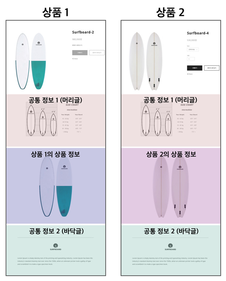 상품 상세 페이지에 공통으로 들어갈 정보를 별도로 작성하여 원하는 상품에 간단하게 추가할 수 있습니다.