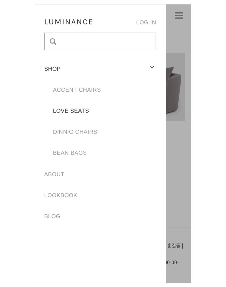 모바일 환경에서 메뉴를 여닫을 때 현재 머무른 페이지가 선택된 상태로 보입니다.
