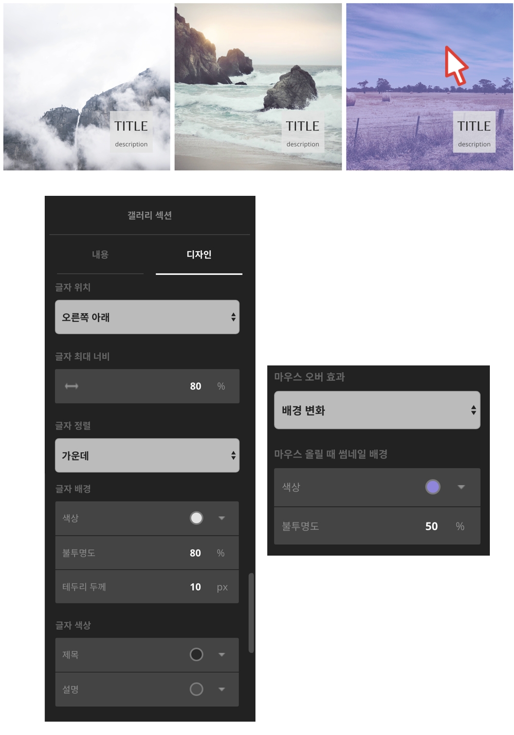 갤러리 제목, 설명 글자 관련 설정이 개선되었습니다. 개선 사항은 다음과 같습니다.