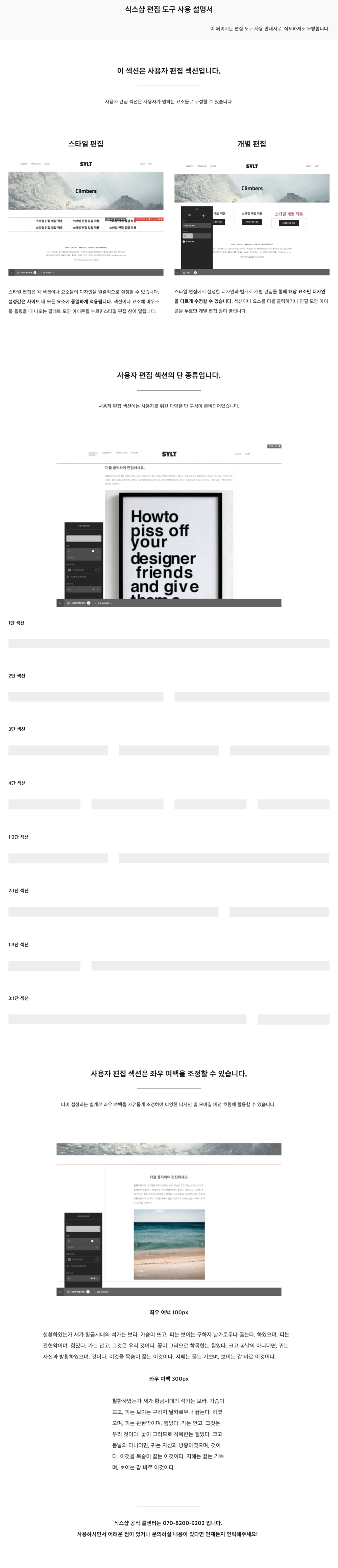 사용 설명서에는 식스샵 편집 도구를 처음 사용할 때 알아야 할 기본 사용법들이 정리되어 있습니다.