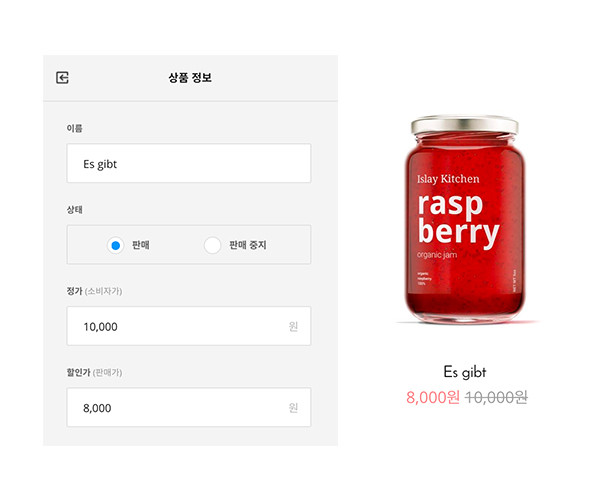 상품 정보에 할인가를 표기하여 판매할 수 있습니다..
