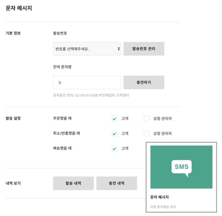 고객이 상품을 주문하거나 취소할 때 자동으로 안내 문자 메시지를 발송합니다.