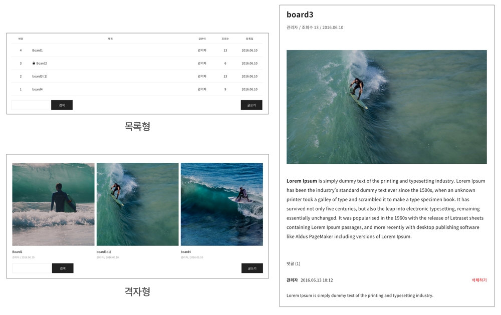 2-1. 목록형, 격자형 게시판을 사용할 수 있습니다.