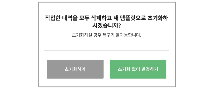 이제 템플릿을 변경할 때, 초기화 여부를 선택할 수 있습니다.