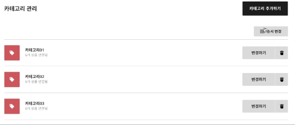 식스샵의 [관리하기 > 카테고리 관리]에서 카테고리의 순서를 변경할 수 있습니다.