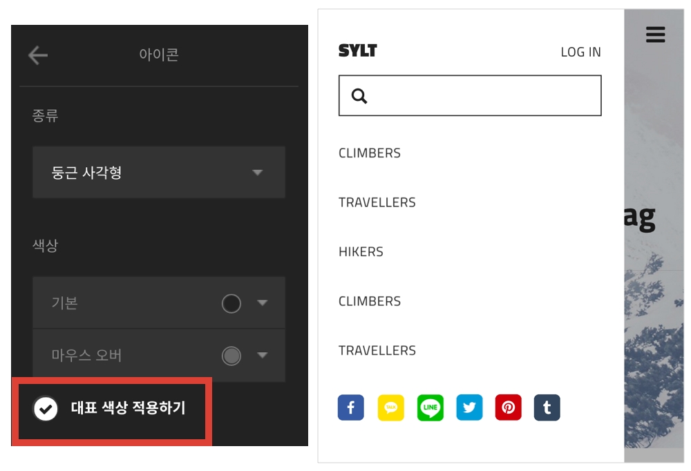3. 모바일 머리글에 아이콘 추가 및 아이콘 대표 색상 설정