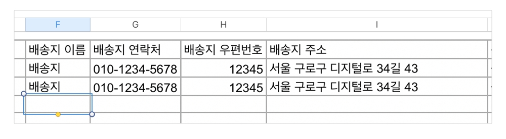주문 목록을 엑셀로 추출했을 때 연락처, 주소 정보도 포함됩니다.