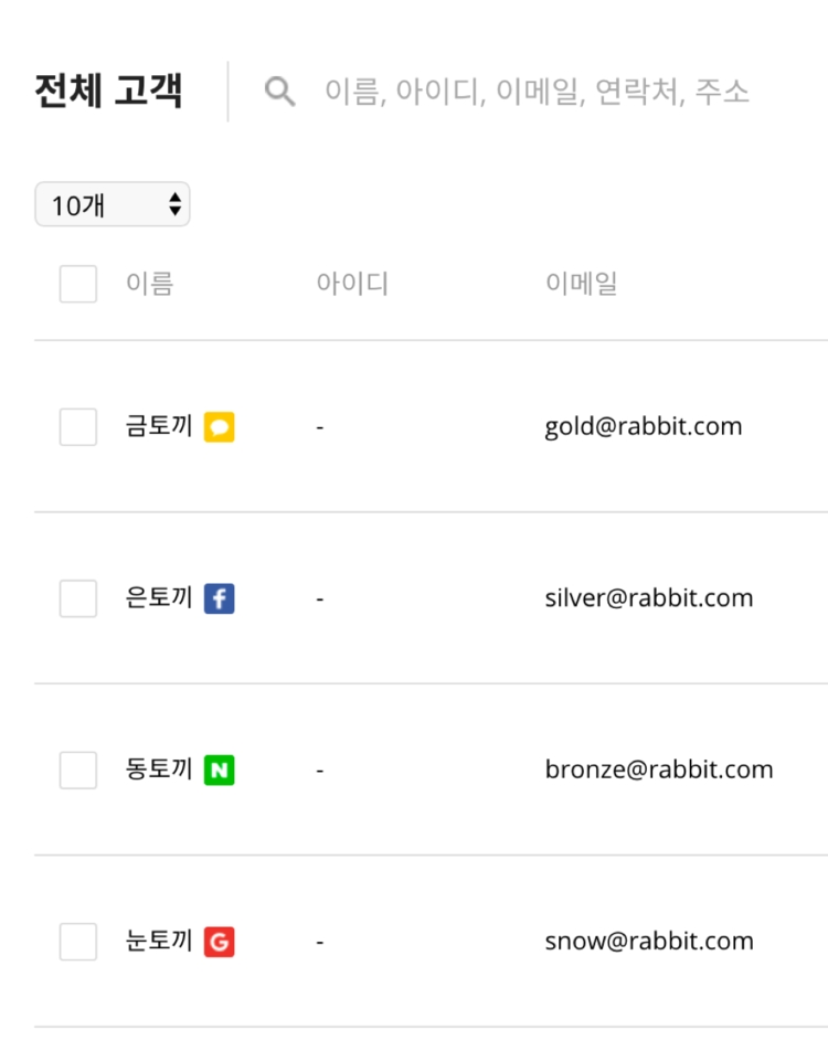 소셜 로그인을 통해 가입한 고객을 표시합니다.