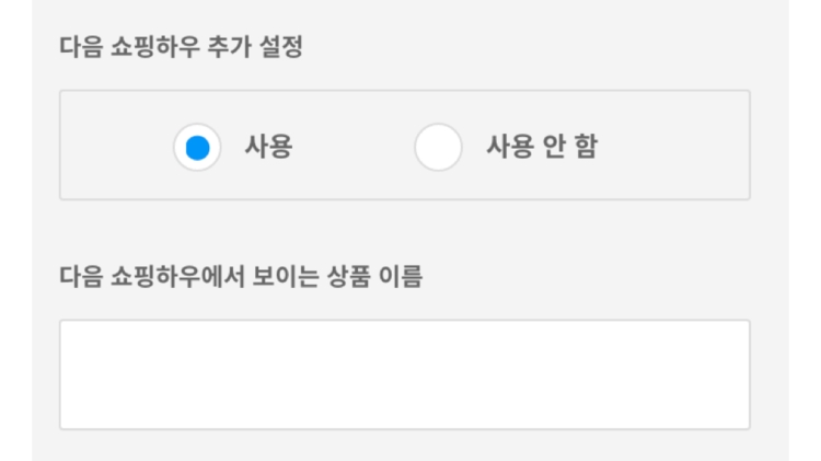 상품 편집 화면에서 다음 쇼핑하우 관련 개별 설정이 추가되었습니다.