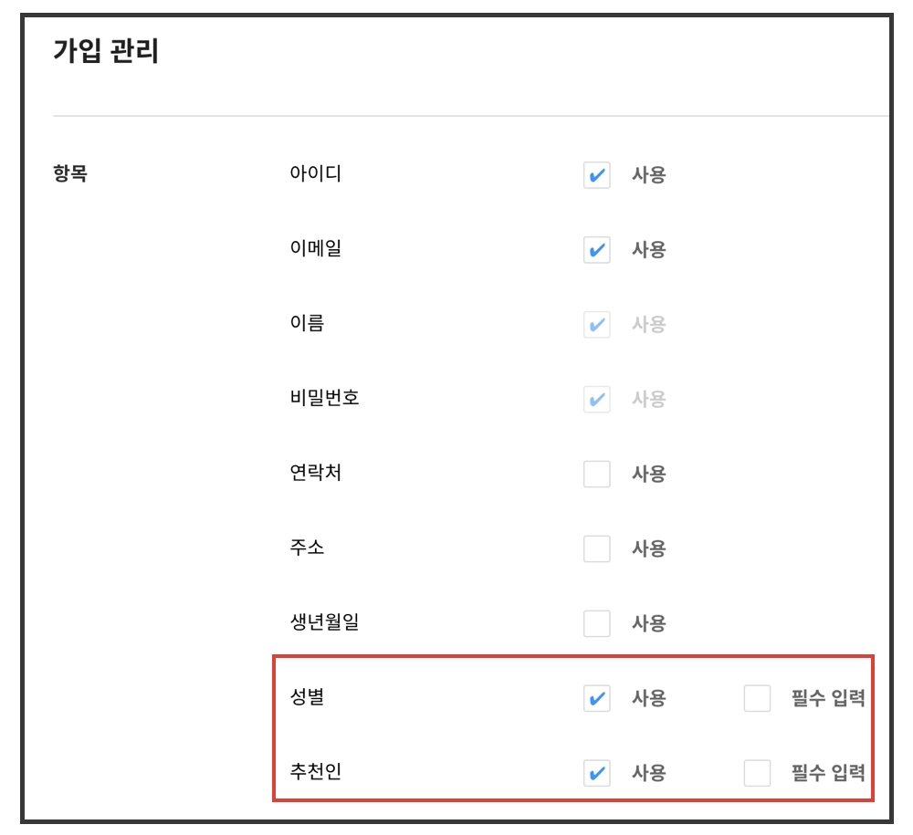 3. 회원 가입 관리 항목 추가-성별, 추천인