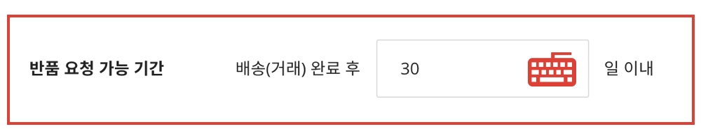 [관리하기 > 설정 > 결제]에서 반품 요청 가능 기간을 설정할 수 있습니다. 배송(거래) 완료 후 설정한 반품 요청 가능 기간이 지나면, 사이트의 주문 상세 정보에서 반품 요청 버튼이 사라집니다.