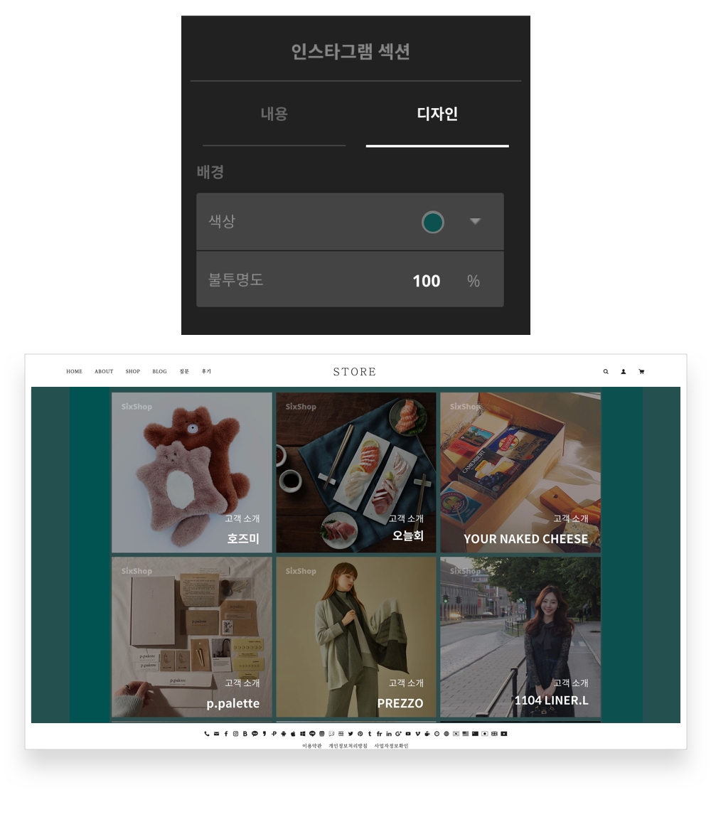 인스타그램 섹션 개별 편집 화면에서 배경 색상을 설정할 수 있습니다.