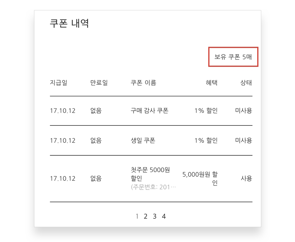 4. [내 정보 > 쿠폰 내역] 보유 쿠폰 매수 표기