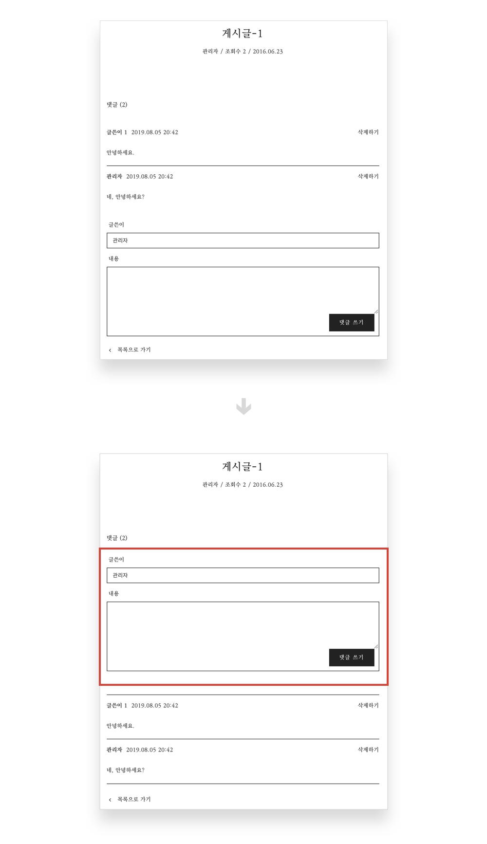4. 블로그, 게시판, 후기 / 질문 게시판 개선: 댓글 작성 위치 변경