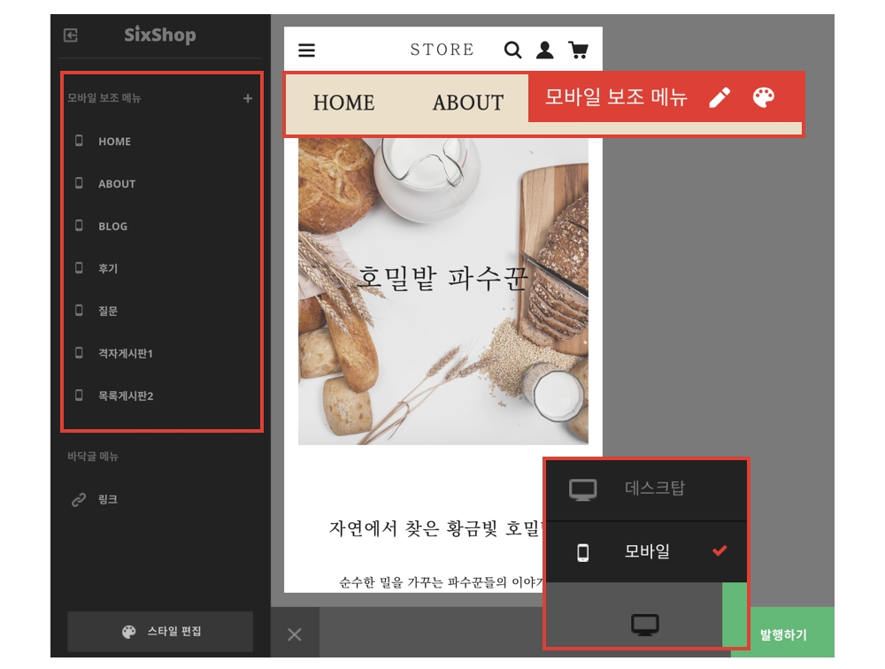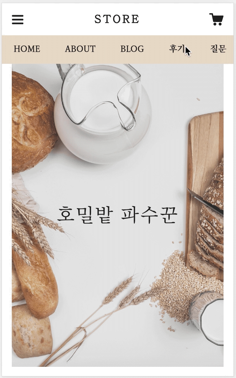 모바일에서 접속 시 특정 페이지들을 상단에 모아 강조할 수 있습니다. 상품 카테고리별 메뉴, 시즌 상품, 특별 할인 상품을 모아둔 페이지 등으로 다양하게 구성해보세요.