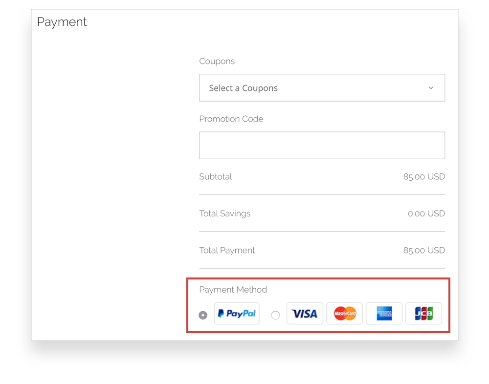 해외 쇼핑몰의 주문 / 결제 페이지에서 결제 방법 선택 버튼을 변경했습니다.