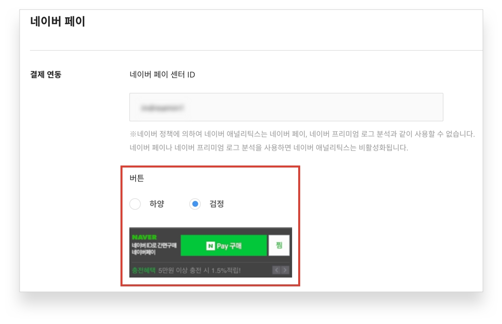 4. 네이버 페이 버튼 색상 추가: 검정 색상