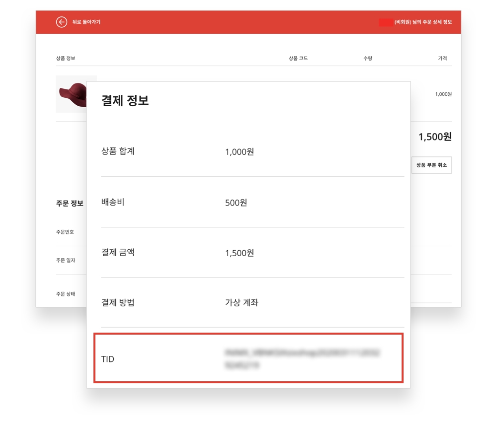 [관리하기 > 주문 > 주문 상세 정보 > 결제 정보]에 TID를 추가했습니다.